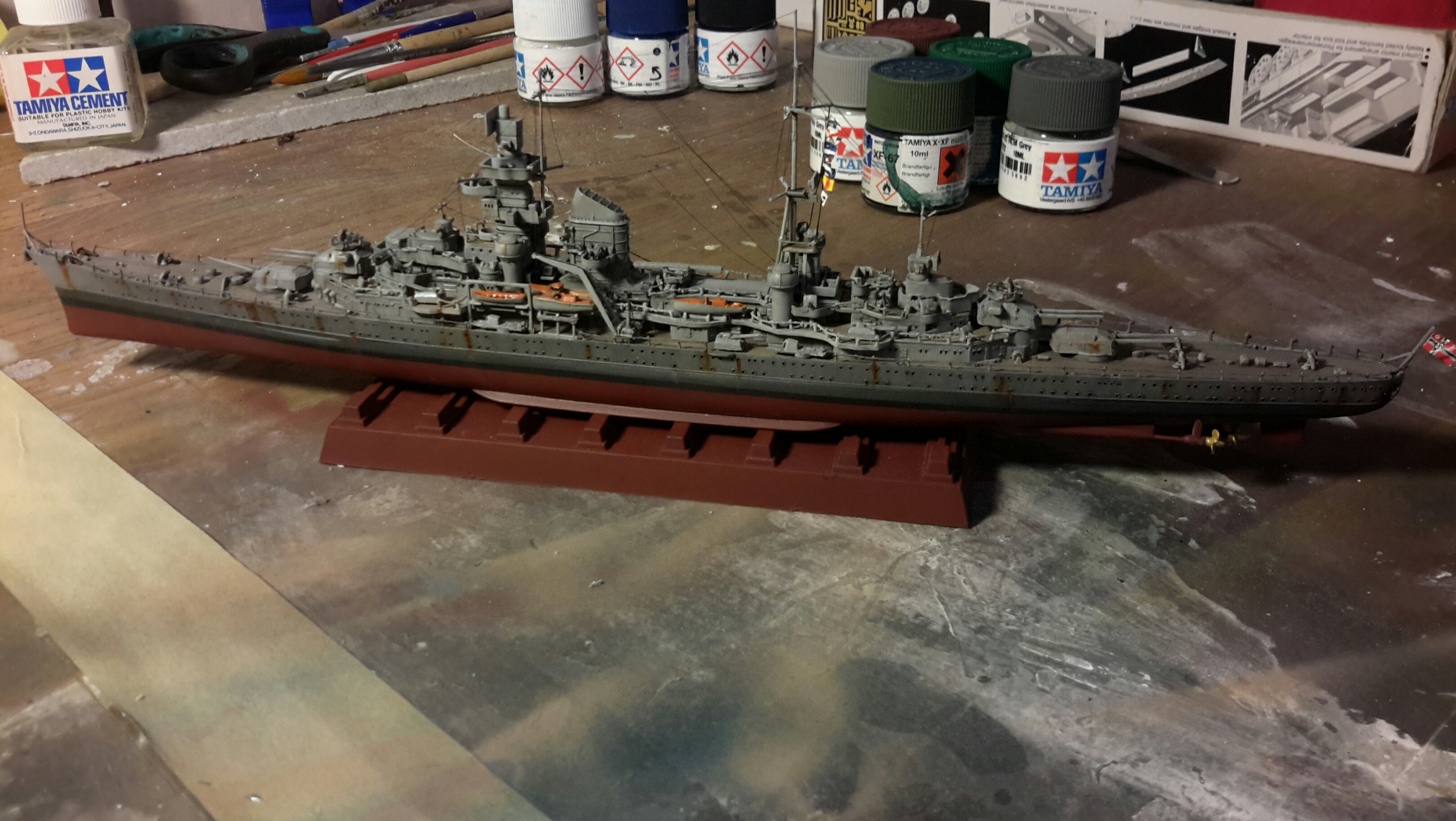 That weathering is superb! Great work! Would love some more pics especially up close to the superstructures and guns!