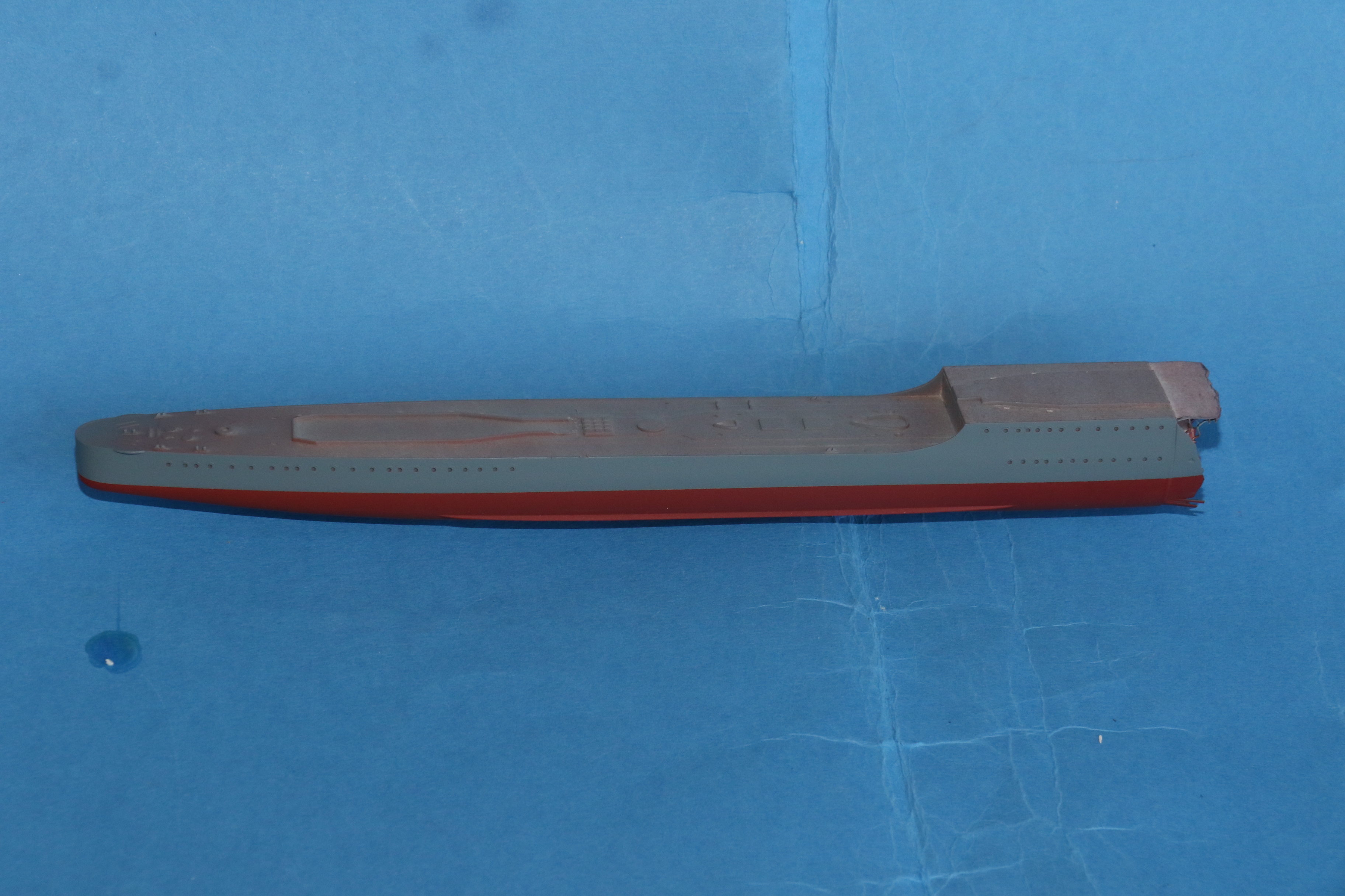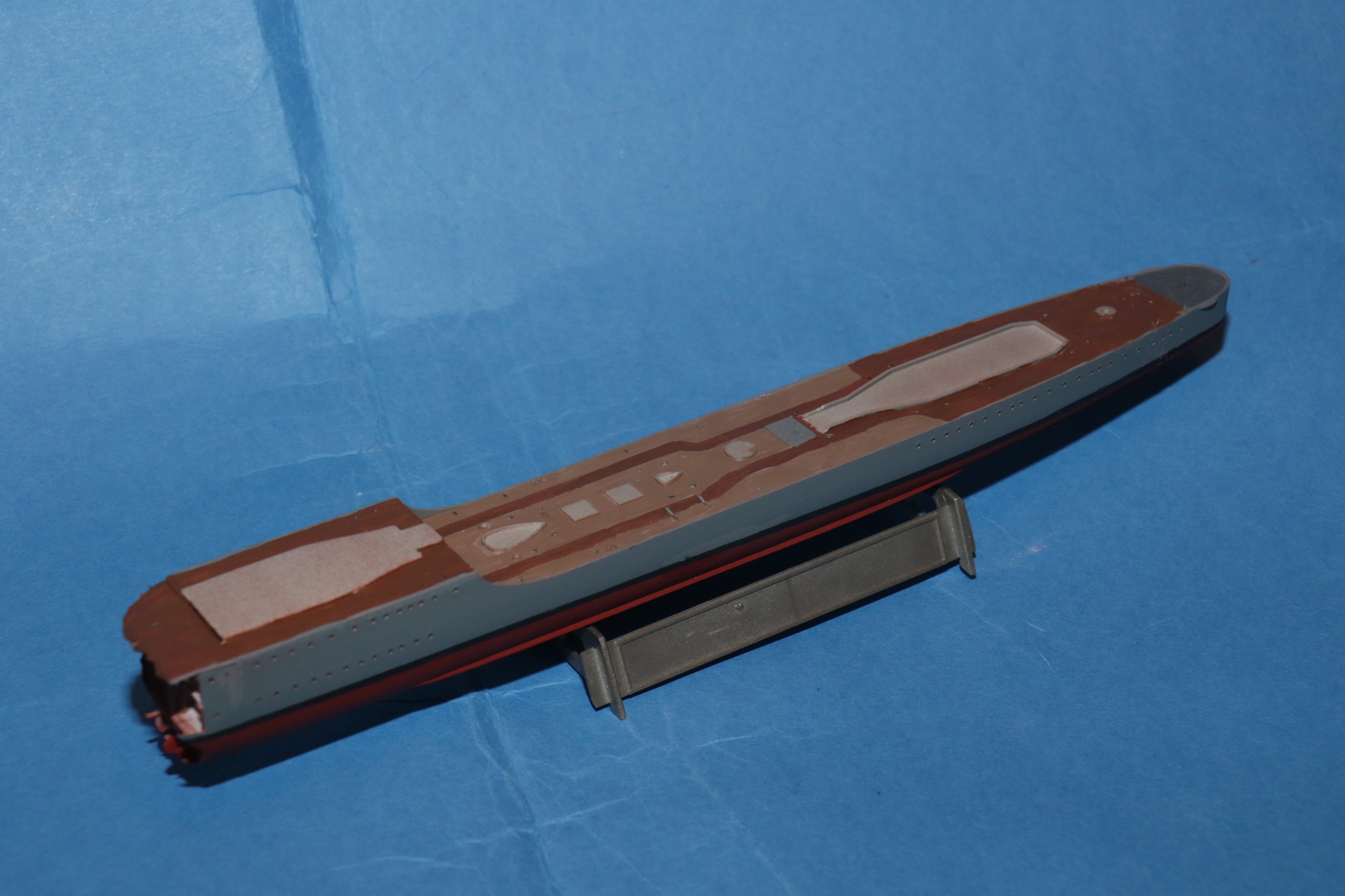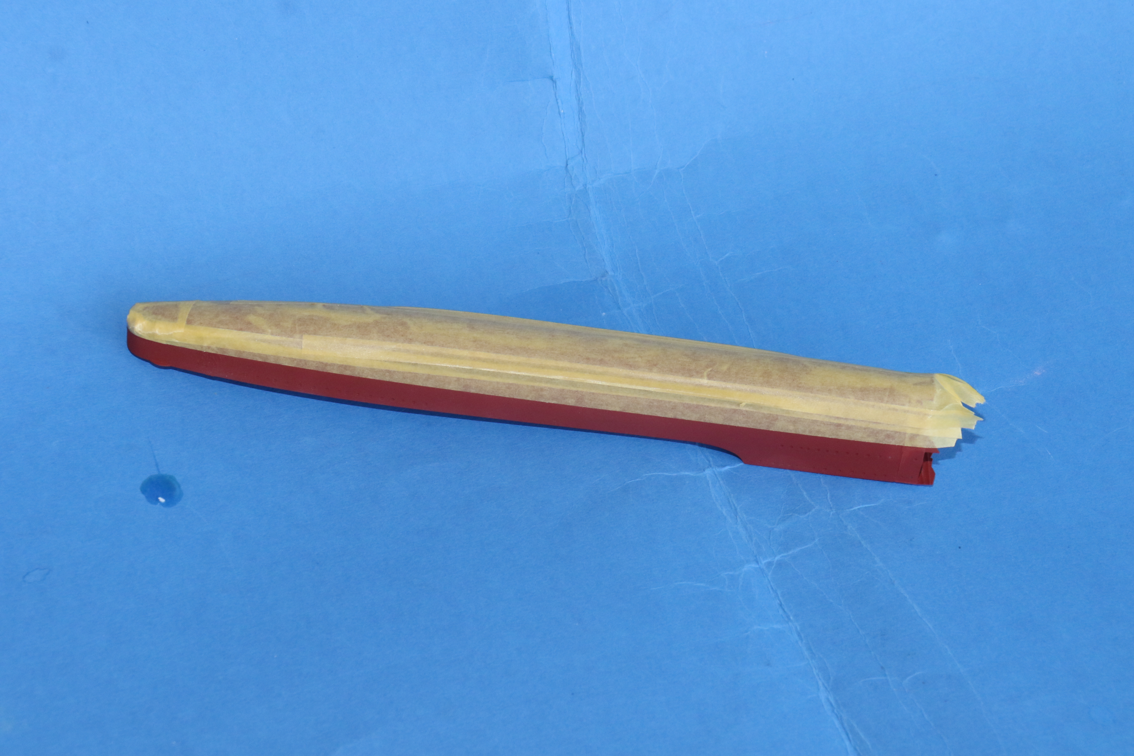The underside of the hull masked ready for a coat of 507b