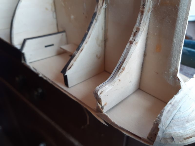 I managed to get the bulkhead off (it wasn't fully home due to wood dust and glue formed at the bottom of the joint) (all nicely held in place with dried glue) took ages to cut it all away, anyway as you can see it's all nicely flush and fitted now.
