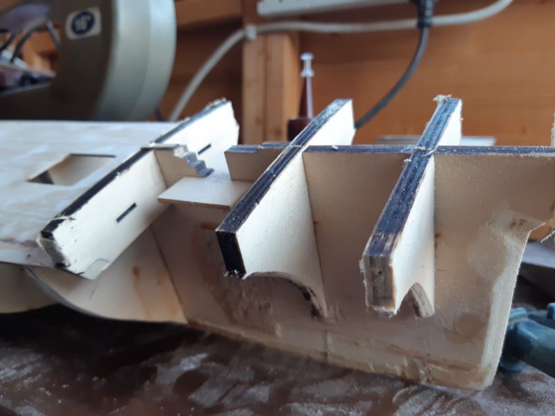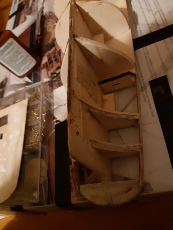 Hopefully I can now proceed as if it were a new kit (apart from the splits in all the bulkheads due to where it was planked before cant think of anything to do about that, if I glue them back together I think it will make it too hard to put new pins in) I'm hoping when its replanked I can drill holes for the pins (they will only be for show anyway)