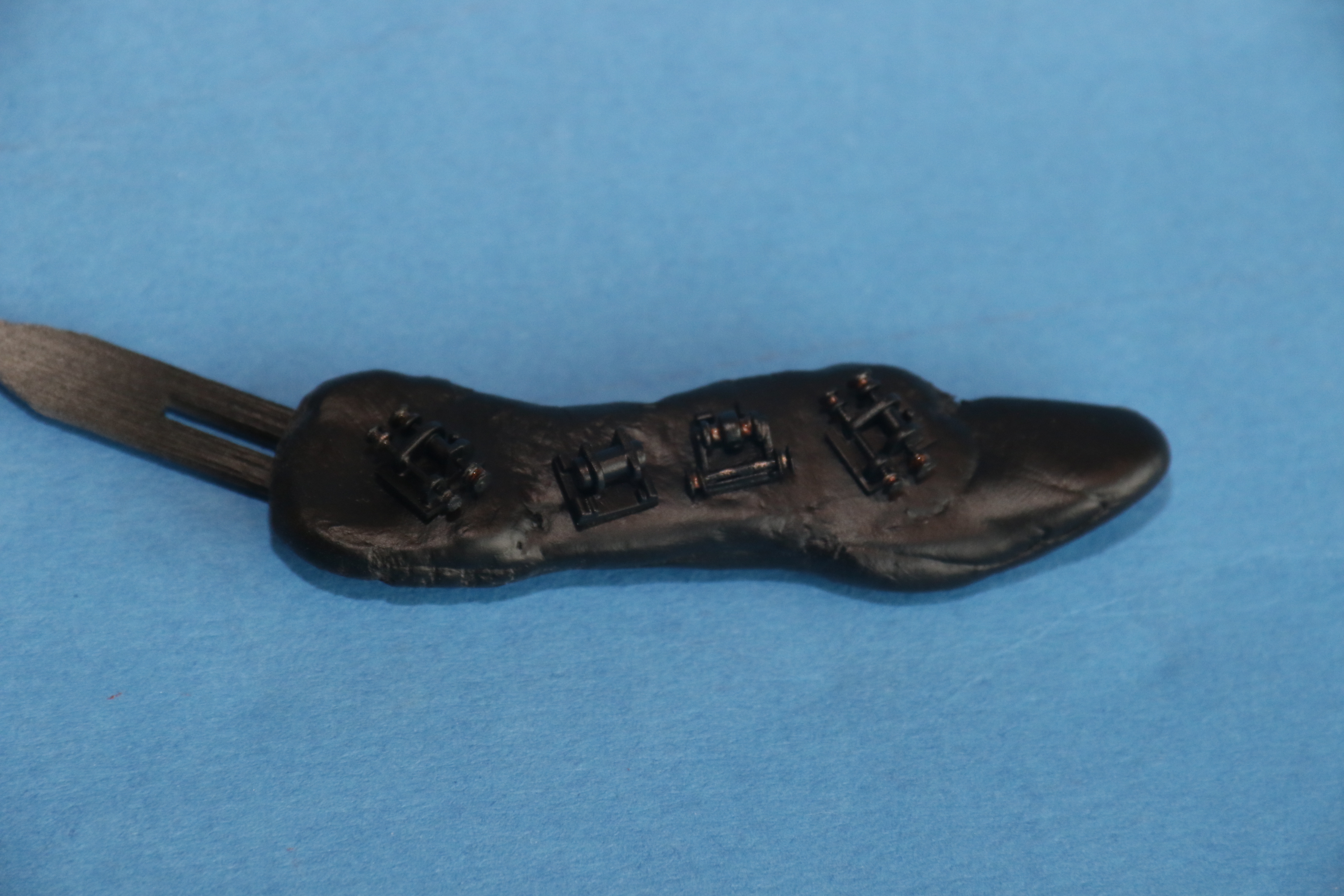 Hawse holes drilled, and some spare anchor cable painted and being fitted.