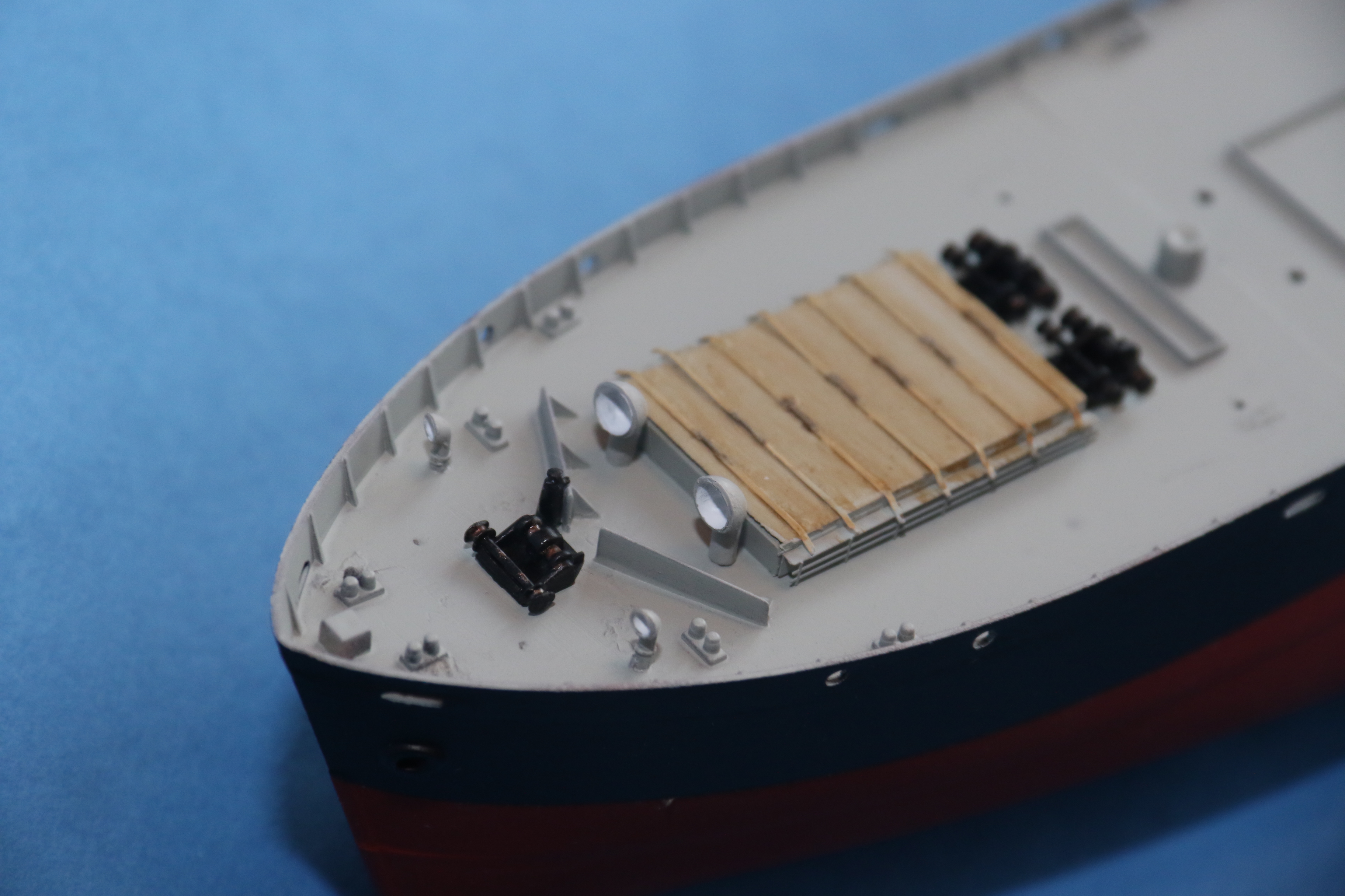 Always glad to have you along for the ride. The fun part of this for me is going to turning her into an early sixties ship, the enclosed wheelhouse, rig on the derricks, cradles for them to sit in stowed etc. (Might have one pair rigged for union purchase)