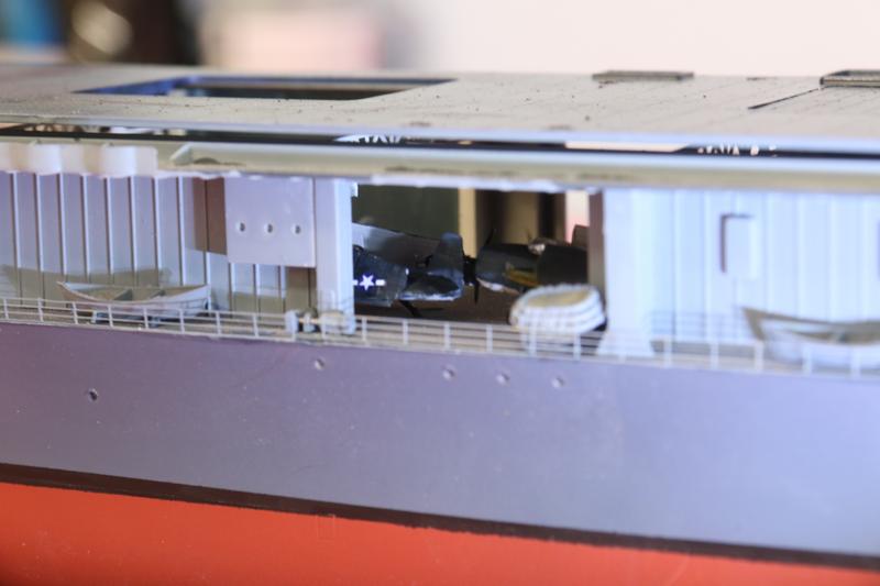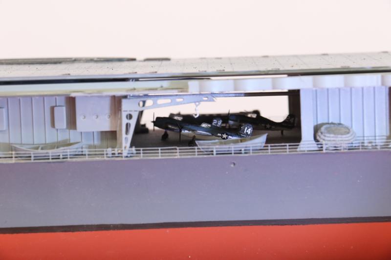 Those planes look wonderful and having them sitting exposed on the hanger deck really enhances the detail of the model.