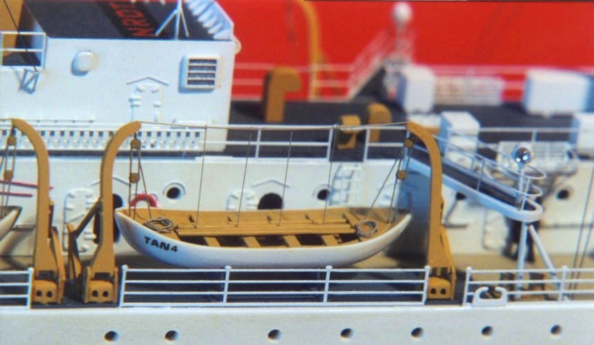 There were also life rings on the inside of the wings of the bridge just below where the search lights are. Also on the main deckhouse between the small boats and on the aft bulkhead of the main deckhouse.
