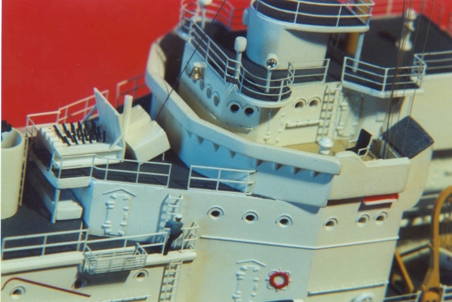 WOW! THAT is an impressive effort. Your mods obviously changed this child's kit into a very challenging project. Thank you for all these details; they are going to be a great help. I was wondering if the depth charges and racks were still in place in the 1950s, but your model answers that one for me. I'm going to have to give your upgrades a try. Many thanks for the info!