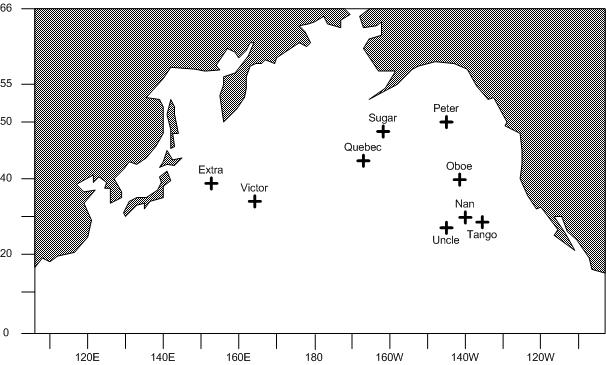 "Weather ship P's ("Peter") operations were taken over by Canada on December 1, 1950, which allowed the Coast Guard to begin operating station U ("Uncle") 2,000 kilometres (1,200 mi) west of northern Baja California on December 12, 1950."