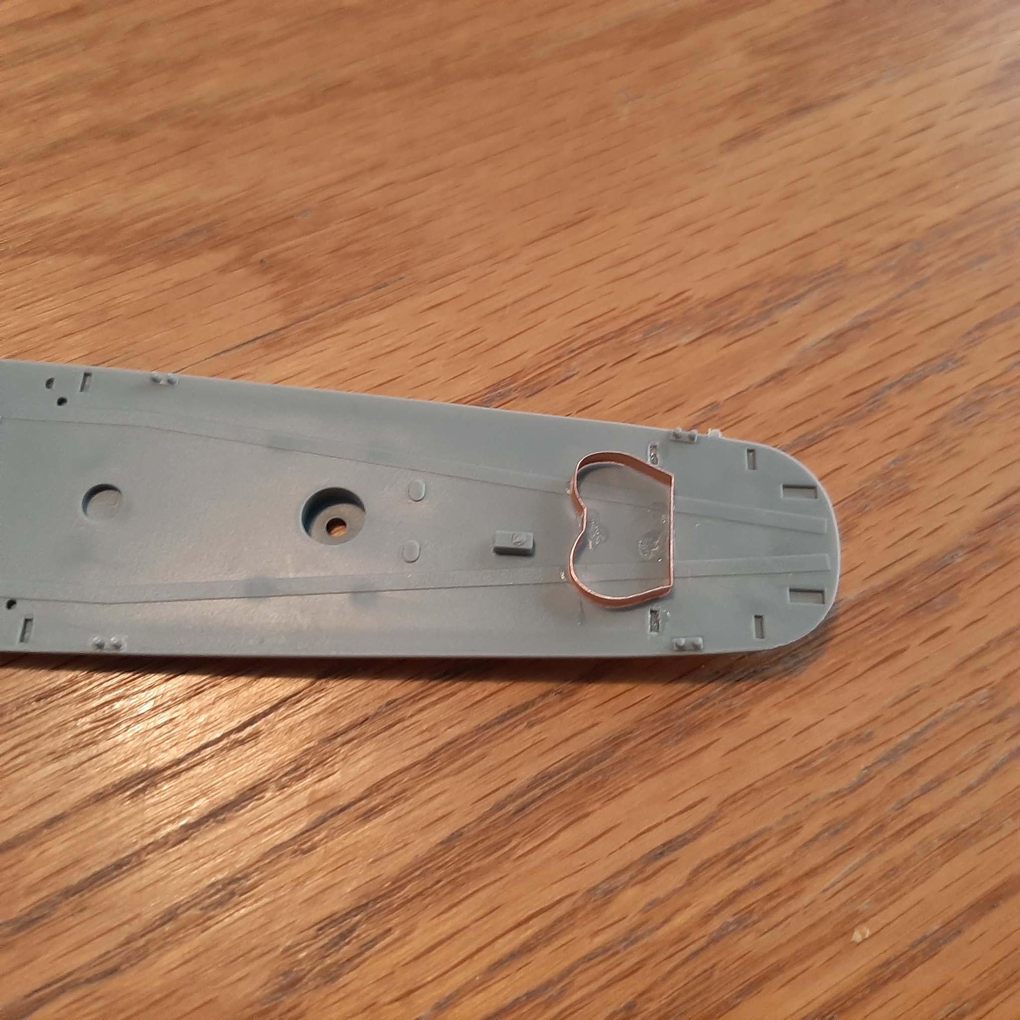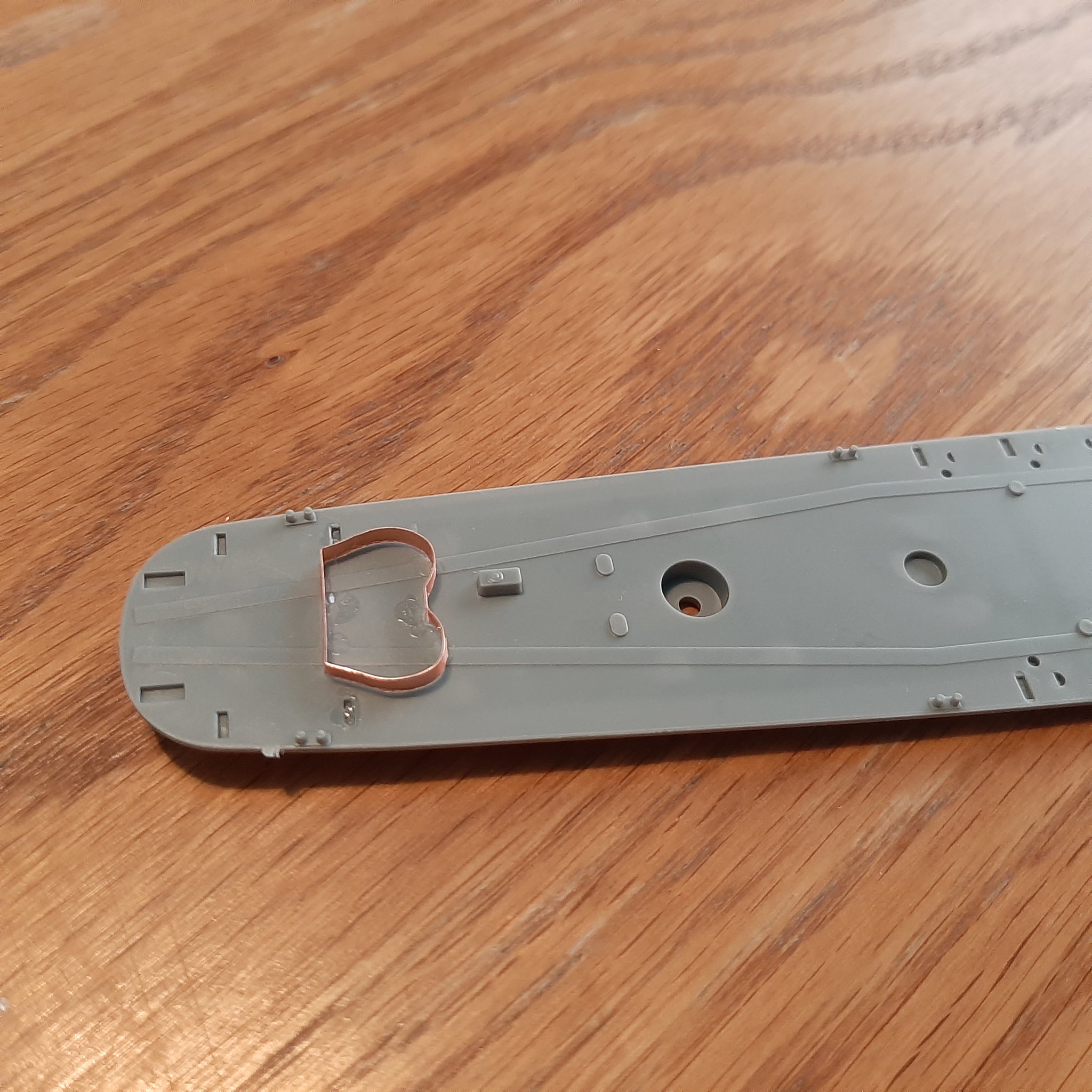 First of many modifications done I scratch built ( bent some copper sheet!  ) the august 1945 dual orly gun tubs. Now I just need to add some details to it. ( After I clean up the super glue.)