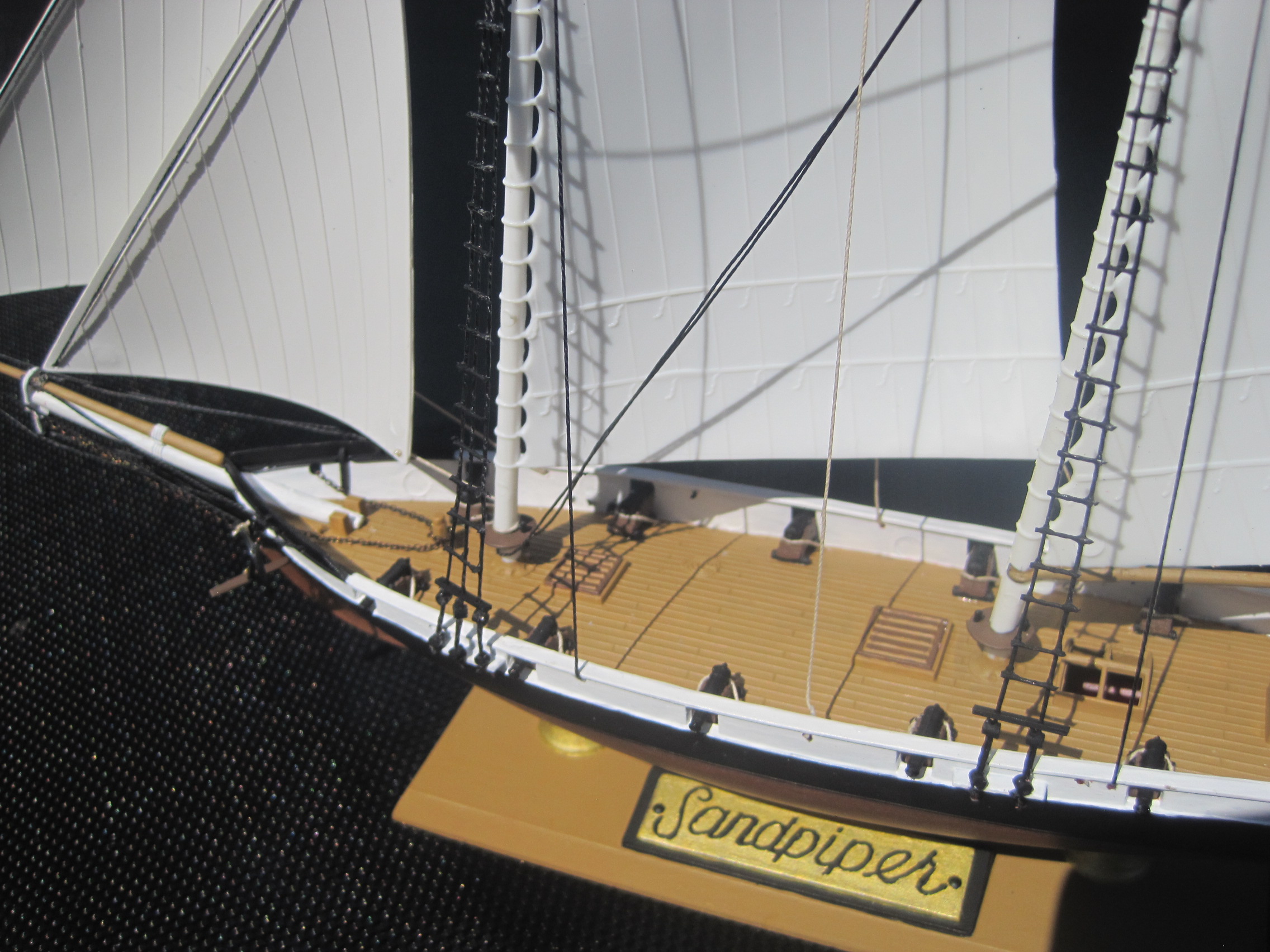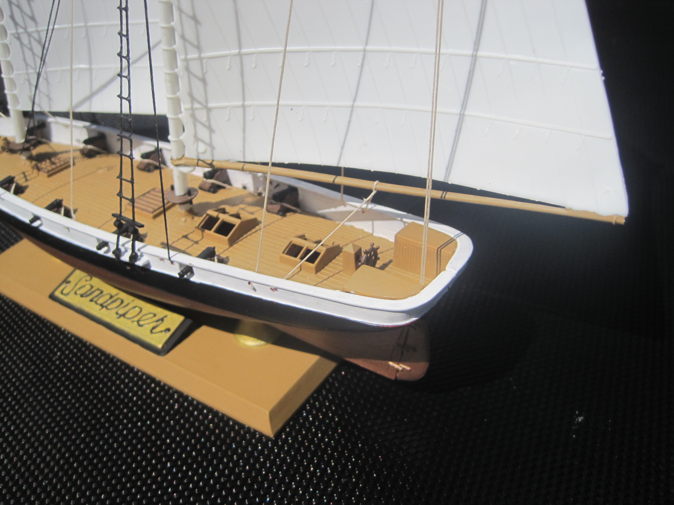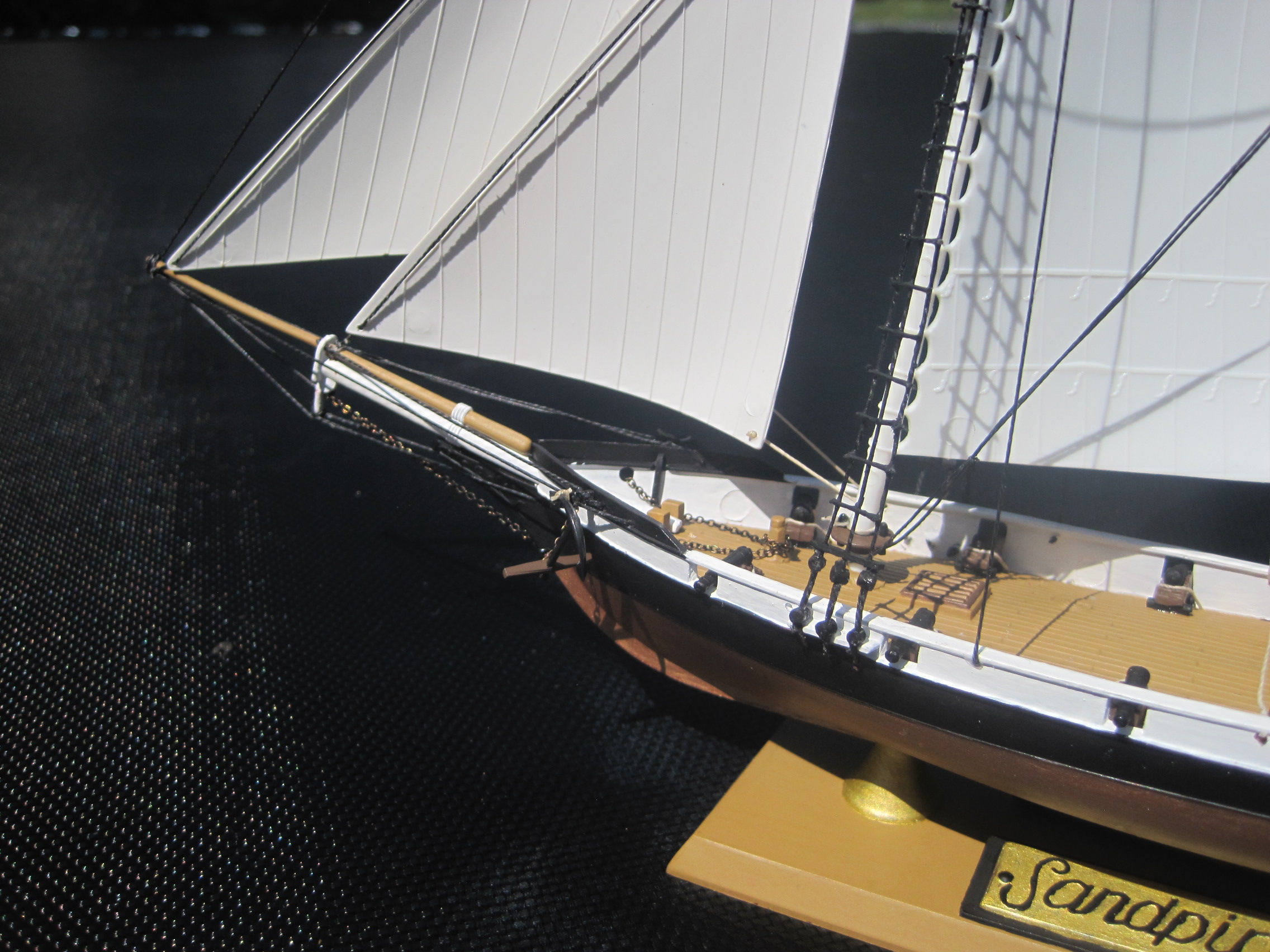 This was really a fun build, and with some VERY minor exceptions it was a complete OOB build. The kit use some small beads to represent the deadeyes used for the ratlines which proved to be too small and brittle for use, and there were no shear poles provided for the ratlines either which I scratch built.