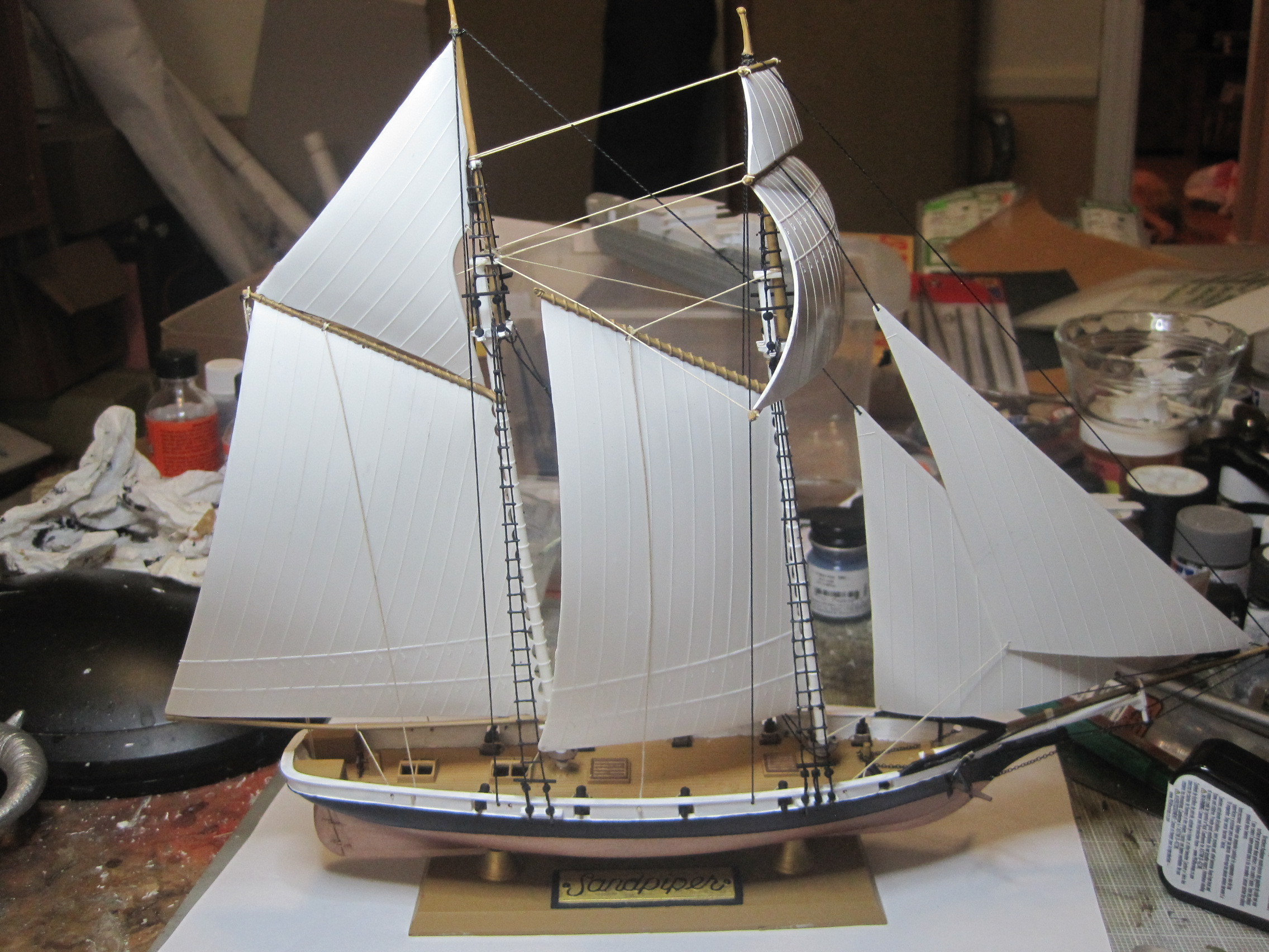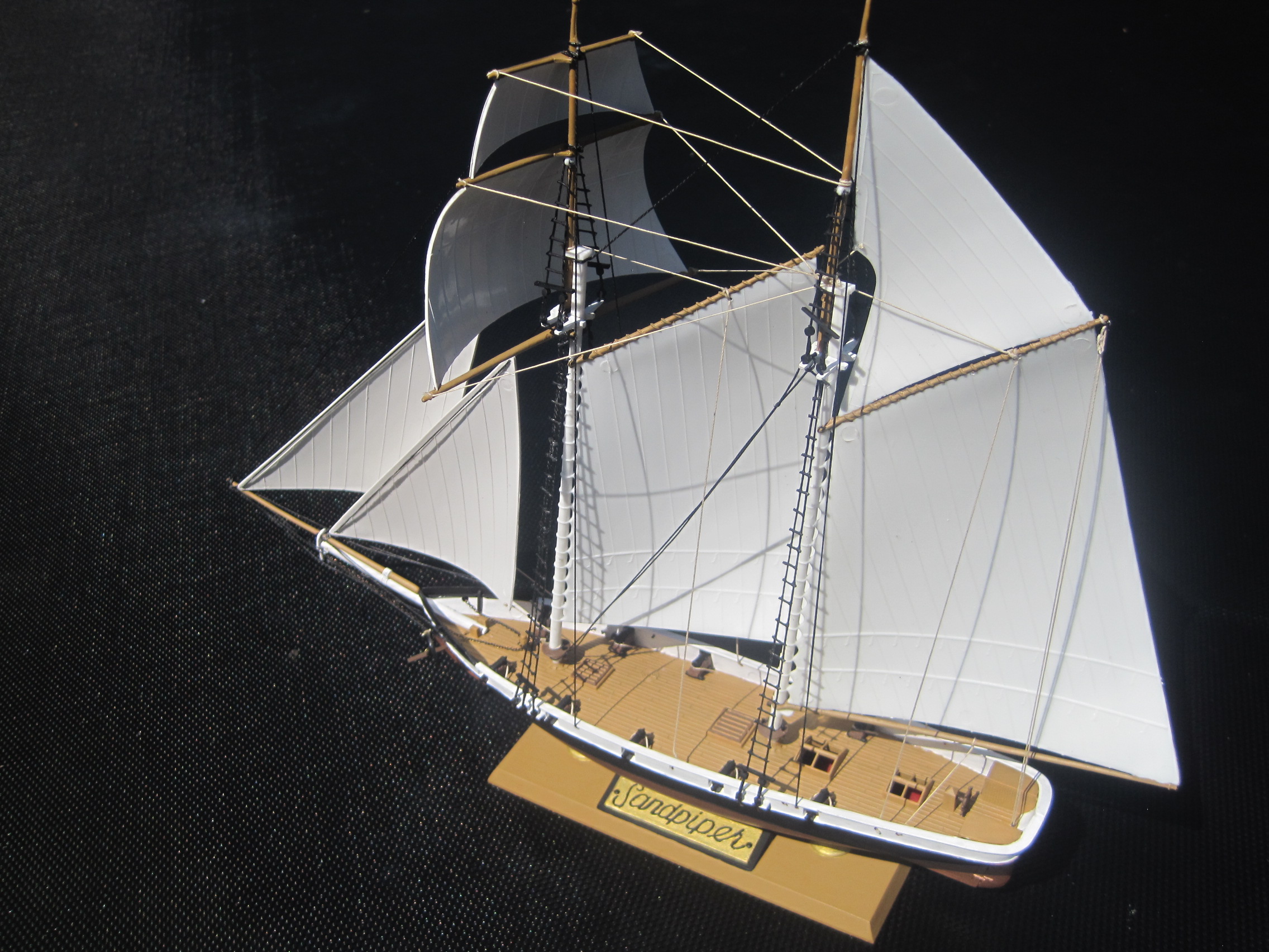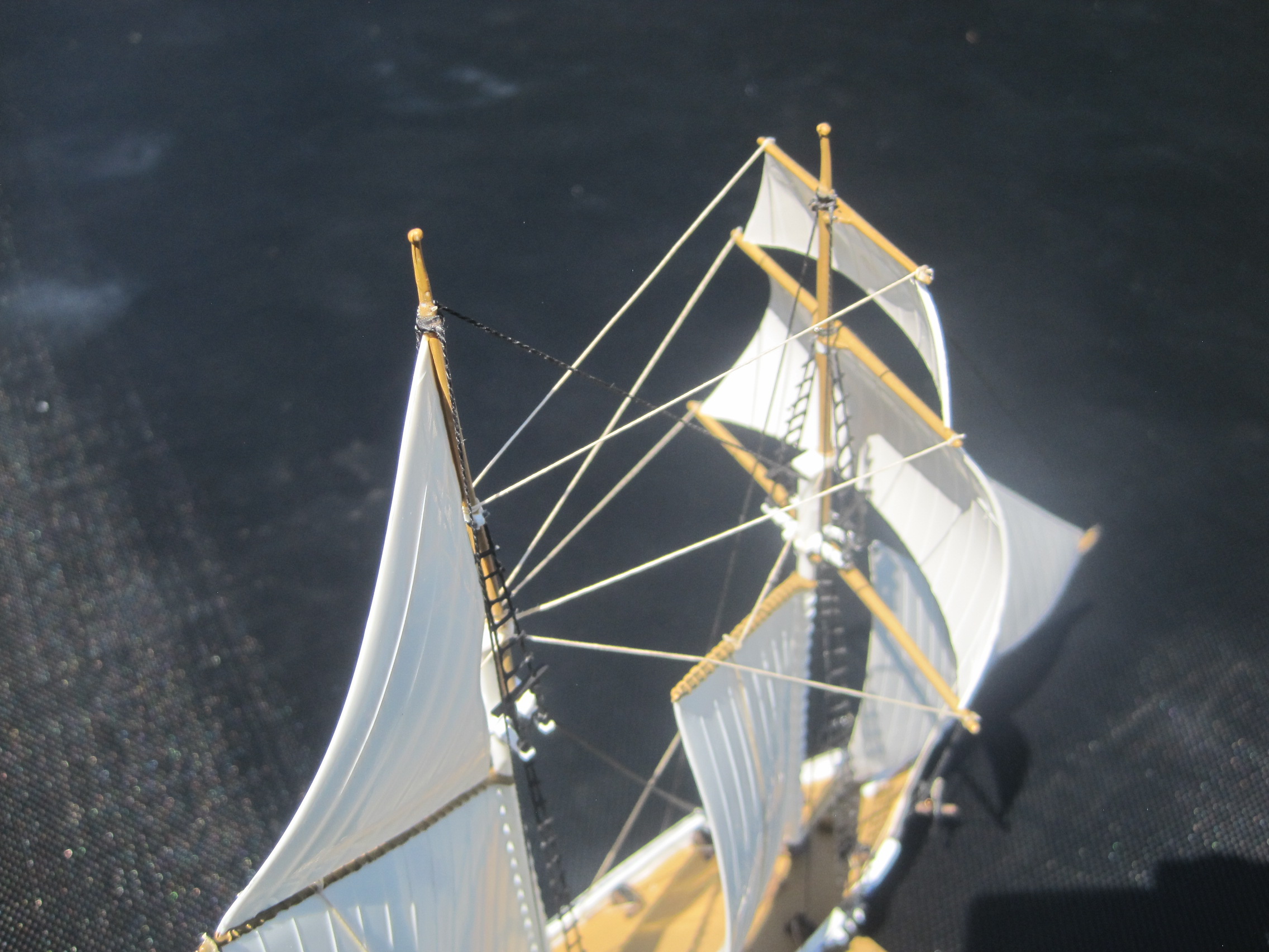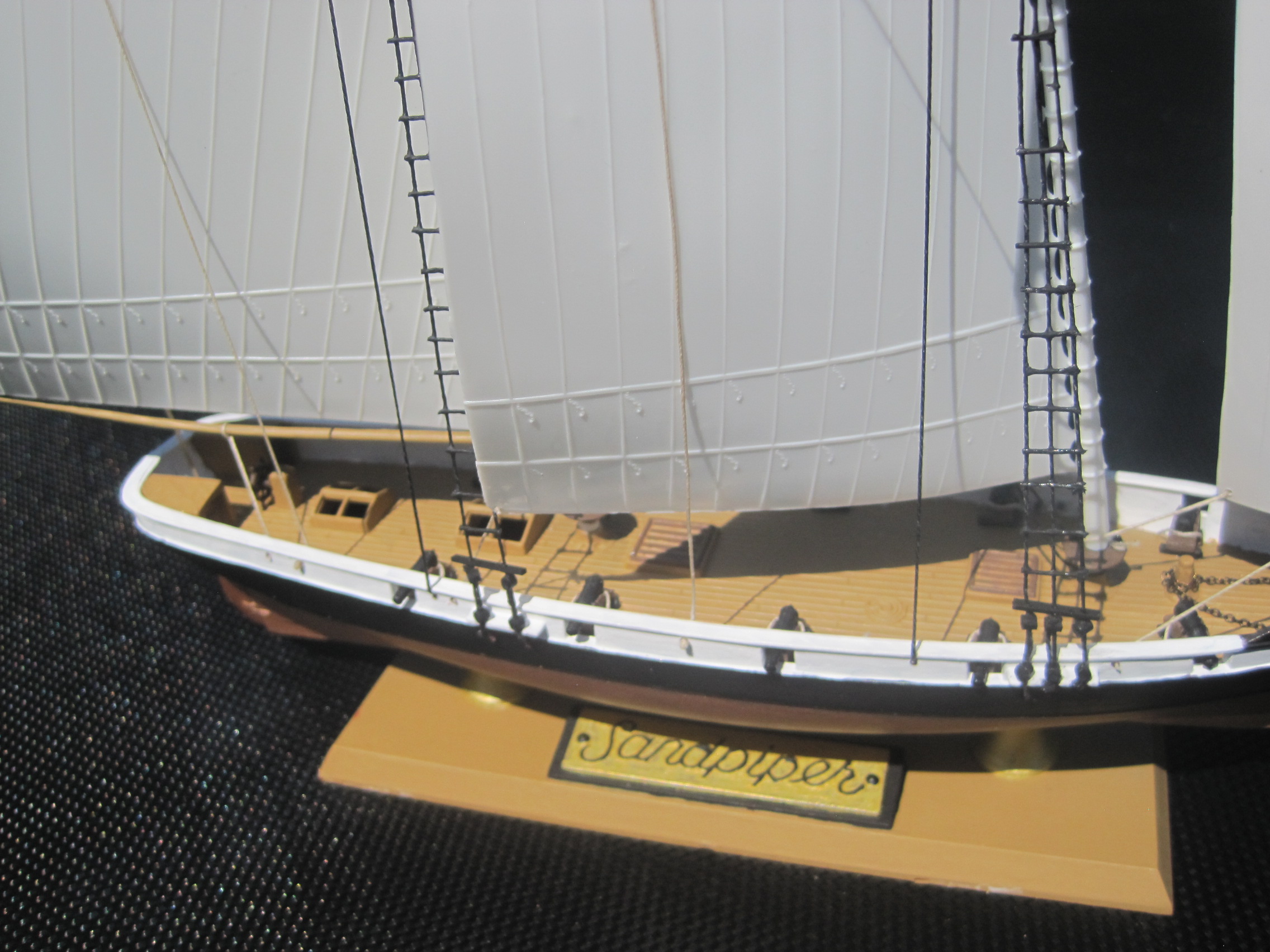 This was really a fun build, and with some VERY minor exceptions it was a complete OOB build. The kit use some small beads to represent the deadeyes used for the ratlines which proved to be too small and brittle for use, and there were no shear poles provided for the ratlines either which I scratch built.