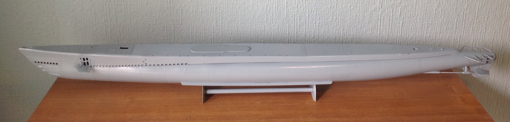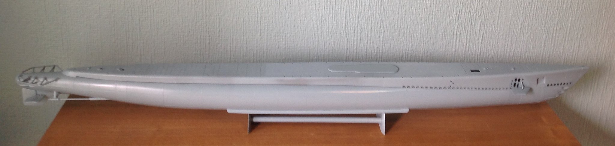 Here we go! The hull is fully built, sanded and primed! Next I will start drilling out the flood vents and applying the deck PE.