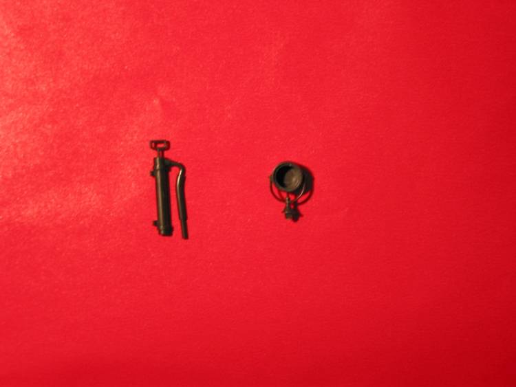 The search light is on the right. What is the one on the left? A pump? What's its use on the PBR? For the search light, what is the middle part on the U-shape brace? Does Tamiya use it to simulate wire or it's an actual device that can control the elevation of the search light?  Thanks in advance.