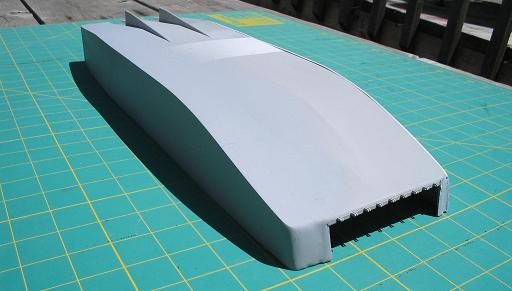 Wouldn't it be easier to make a hollow, box-like structure to add to each side as opposed to laminating sheet styrene? Or, cut the hull sides off and add the extra width with a sheet styrene box between the outer hull and inner hull? "....