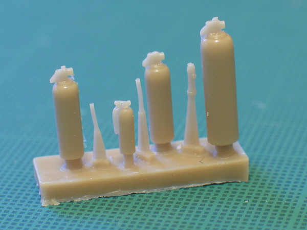 ) which limbs belong with which torso etc., the set also includes various tools - and I have no idea what they are. Can anyone identify the objects between the extinguisher bottles?: