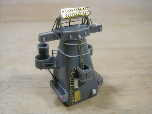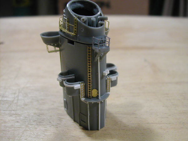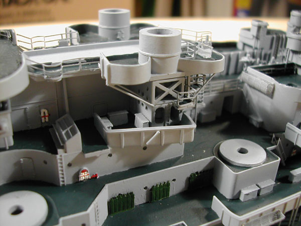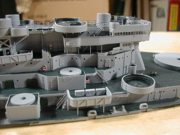 Moving aft, I added the PE platforms for the searchlights (later to become platforms for AA guns). These are very nice, and really add something to the model..