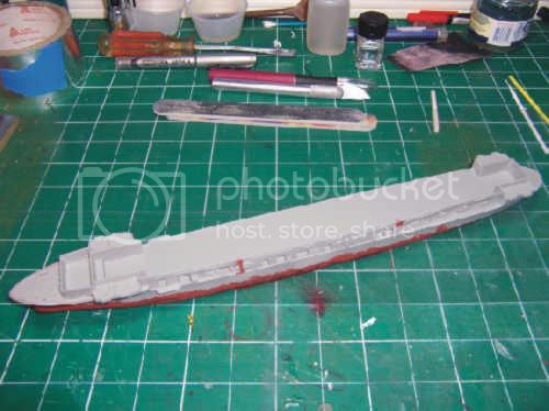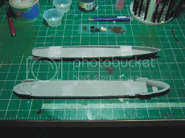 Well, everything is a go for my Doolittle Raid Hornet. I've got the reference photos and I made the base today. While I was laying everything out this afternoon, I layed the hull of the 1/700 Hornet next to the hull of the 1/350 Sullivans. For those who say that they won't build 1/700 scale because it's too small, look at this photo....