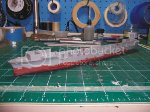 That's the 1/700 Hornet on the bottom and the 1/350 Sullivans on the top. Wow. :-)