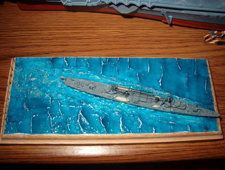 Well besides using thinner rigging I plan to drybrush the white on the tops of the waves. Just panting it on caused some white to end up at the bottom of the waves ether from tunning over the side or from slipping with the brush.