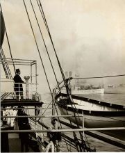 It must have been a superb site with these large battleships, painted white, flags flying, decks lined with sailors and their huge guns glistening in the sunlight, their coal stacks billowing clouds of thick black smoke into the cloudy sky.