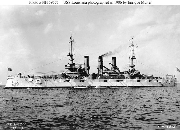 The USS Louisiana was commissioned on 2 June 1906 with Captain Albert R Couden in command.