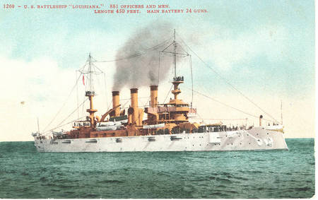 The USS Louisiana was laid down on 7 February 1903 by the Newport News Shipbuilding & Dry Dock Company, Newport News, Virginia and launched on 27 August 1904.She was sponsored by Miss Juanita LaLande.