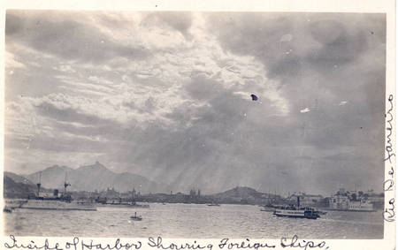 That evening the Fleet rigged green and white lights on the ship to honor Brazil and Rio provided the fireworks for sailors onboard the ships. The next day hundred of sailors went ashore to explore the city.