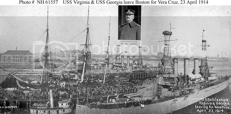In addition to routine operations along the U.S. Atlantic coast and in the Caribbean area, she visited France and England in late 1909 and tested techniques for coaling at sea in 1910. She also received a second "cage" mast during this time. In 1913 and 1914, the USS Virginia provided naval presence off Mexico, before and during the U.S. intervention at Vera Cruz.