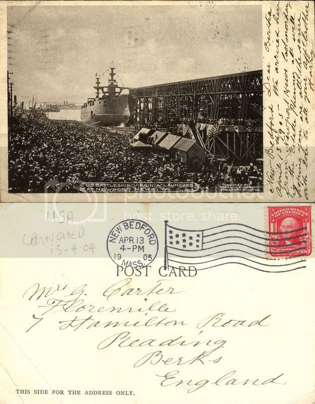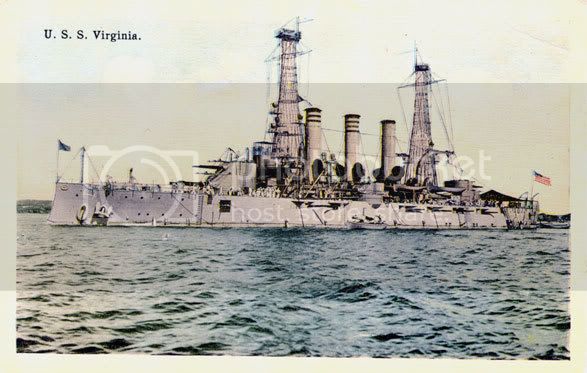 She was laid down on the 21st of May 1902 by the Newport News Shipbuilding and Dry Dock Company, Newport News, Virginia. The USS Virginia was launched on the 6th of April 1904 and sponsored by Miss Gay Montague, daughter of the Governor of Virginia. She was commissioned on 7th of May 1906, with Capt. Seaton Schroeder in command.