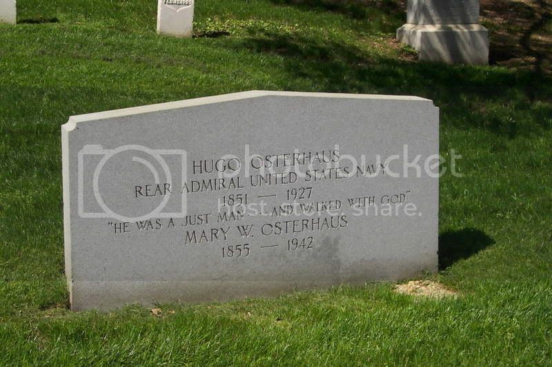 His son, Hugo Wilson Osterhaus, Rear Admiral, United States Navy, is buried in an adjacent gravesite in Arlington National Cemetery.