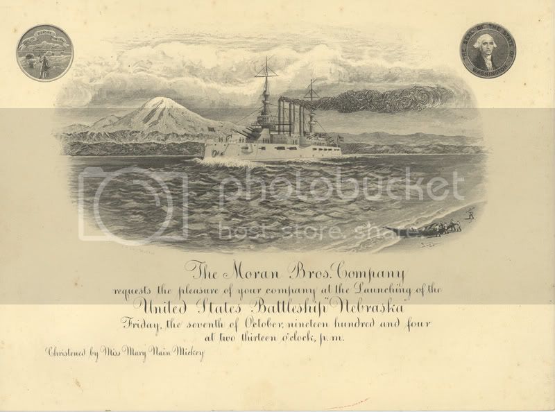 The first Nebraska (BB-14), was laid down by Moran Brothers, Seattle, Washington, on the 4th of July 1902; she was to be the last U.S. Navy battleship to be built by a West Coast shipyard for over a decade.