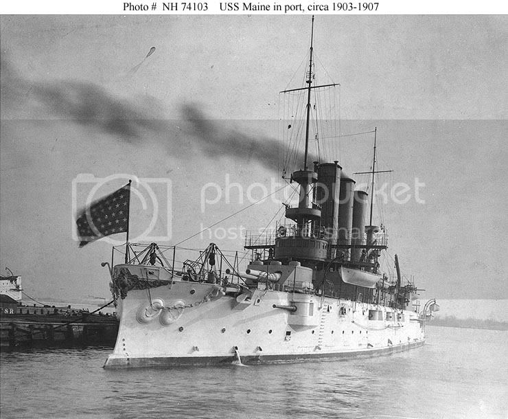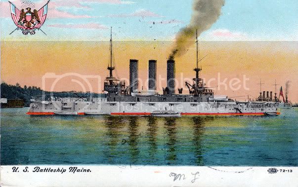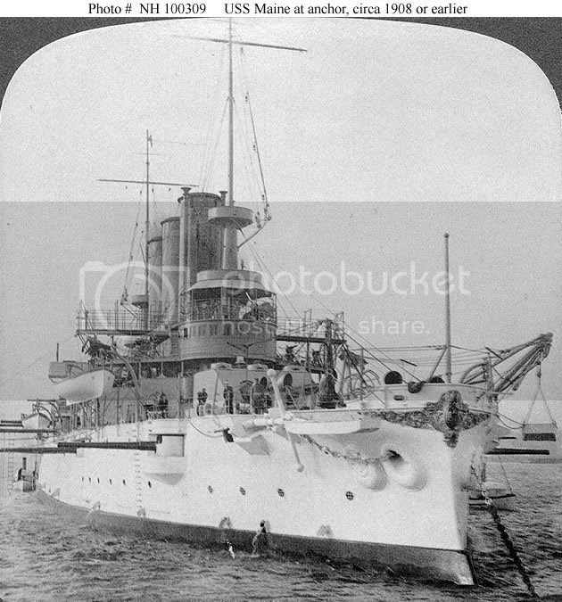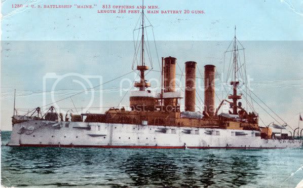 From 1903 to 1907 the USS Maine cruised along the Atlantic coast south to the West Indies, and she completed one cruise to the Mediterranean Sea. On the 16th of December 1907 she left Hampton Roads with the rest of the U.S. Atlantic Fleet en route to the Pacific Ocean where she joined ships of that Fleet for a cruise around the world.