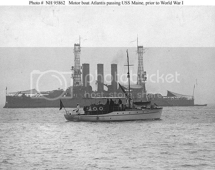 USS Atlantis (American Motor Boat 1911) passing the Maine prior to World War 1. Photograph by Paul Thompson, New York. This pleasure craft was acquired by the US Navy on 2 July 1917 and placed in commission on 27 September 1917 as USS Atlantis (SP-40) and was removed from the Navy list on 7 July 1919 and later sold.