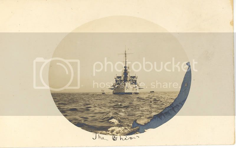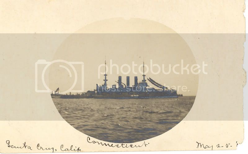 These two postcards shown here were mailed together and picture the USS Connecticut and the USS Ohio anchored off Santa Cruz and dated May 5th.