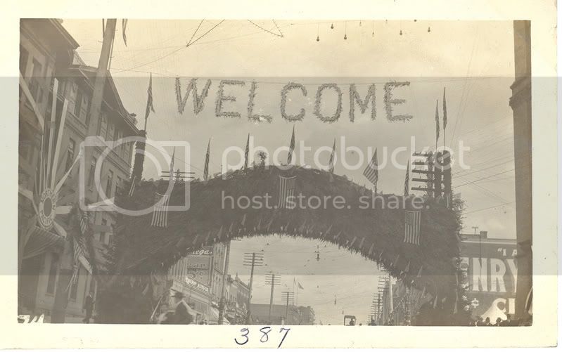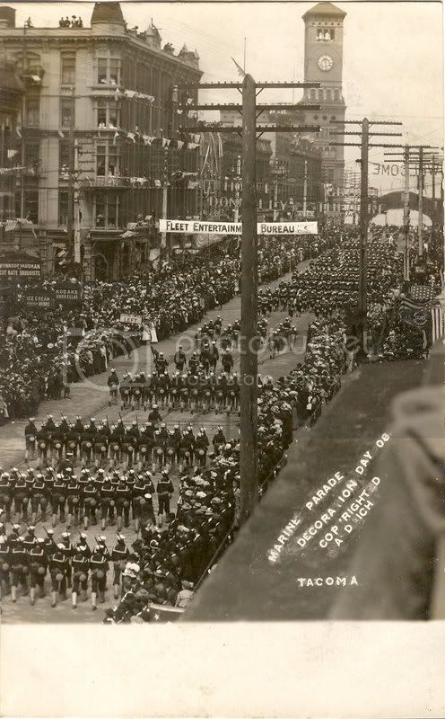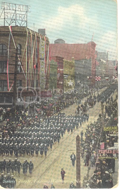 The arrival of the fleet was a cause for celebration and the city of Tacoma erected an arch on Pacific Street to welcome the sailors.