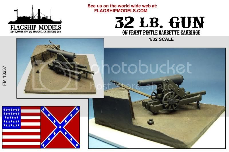Flagship Models latest release will be a 1/32 scale model kit of an American Civil War 32lb gun. The various uses that both sides of the conflict found for it is astounding. The 32lb gun was used by both sides in both Naval and Ground theaters. This model represents just one of the several ways the Confederacy used it. They invented a new carriage that allowed the gun to be wielded with little threat to the users from enemy gun fire.