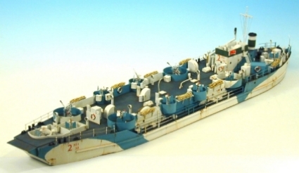 This massive model by Dan Taylor is 29.25" (745mm) long and 6.25" (157mm) wide and consists of main castings in resin and a huge quantity of other fittings in resin, and etched brass. All 20mm & 40mm cannons, with fully detailed shields and sights, stowage and ALL fittings are included. The master model was designed using original British War-time shipyard drawings.
