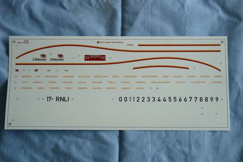 The decal scheme will allow any one of the current operational RNLI Severn Class lifeboats to be modeled.