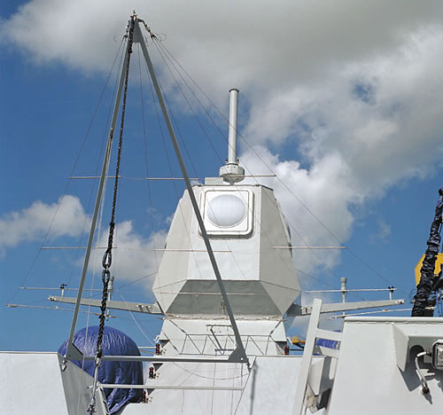 The Thales Smart-L three-dimensional radar operating in D band provides air search. The Thales Smart-L three-dimensional radar operating in D band provides air search.