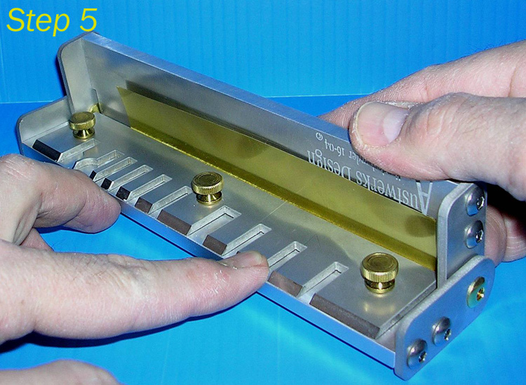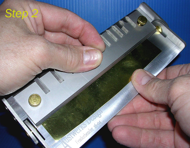 I tested the tool bending and forming various gauges of brass sheet stock from .001 foil to .010 heavy, and the results were equally as good regardless of the gauge. I also tried out some .005 aluminum, which bent nicely, with a good clean edge.