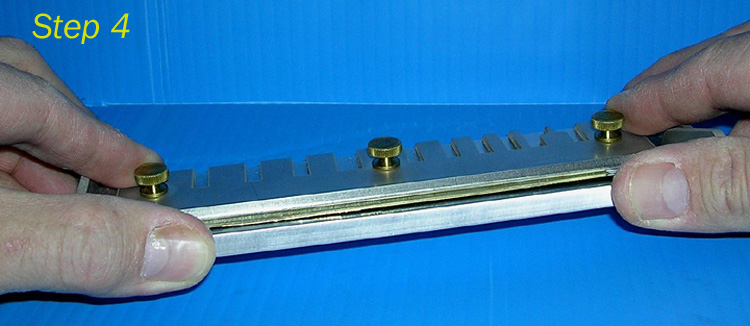 Rotate the Pressure/Finger Plate (Part B) 180 degrees so that the long edge is adjacent to the bending line on the Main Body (A). Reinstall the three Brass Tensioning Screws and you’re ready to bend and fold.
