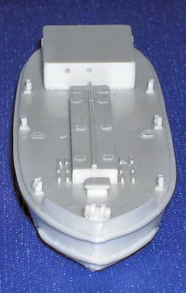 The one piece superstructure/deck house also is a fine casting, with good window, door and port details, as well as the ships stack, well done, and the tiny life raft, waiting at muster. An overall good casting, with minute flash.