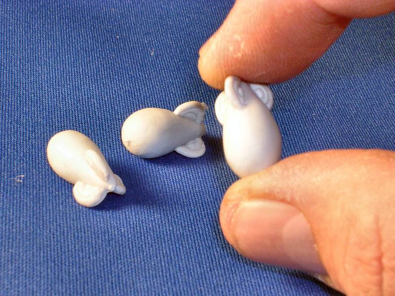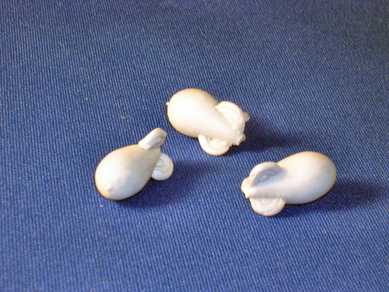 Removal of the balloons from the lug is a snap (because of both quality resin AND casting technique), as all that is required is a gentle nudge of the thumb and fore-finger to seperate the castings from the lug itself...as far as cleanup, there is a tiny nub of resin that held the balloon onto the casting lug that is easily removed with a tip of the x-acto blade.  All that is left is a quick polish with some ultra-fine abrasive and she's ready to go!