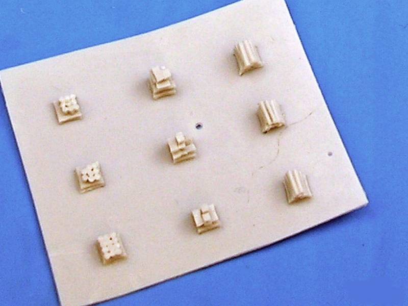 These accessory parts are cast from Harry's quality resin, clean, free from trash and flash, with excellent details cast in to the parts.  For use, all that is required is to trim around one (or more) of the pallet loads, a light buff along the edges with your sanding stick to "true up" your pallet, and it's ready for the finishing process!